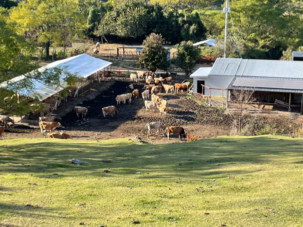 ディアランドファーム(岡崎牧場、経営者は鹿島さん)は、高知の山地酪農を先駆者で、創始者。岡崎正英さんの取り組みを通して山地酪農方式は全国に広がっていきました。 ただ、かつては全面放牧であったが、放牧地の面積も狭まく急峻地形であったために草地維持の困難(他の牧場に比べ、比較的住宅地に近く面積の拡張も困難)から、現在はフリーバーン牛舎と育成牛中心の短時間放牧を組み合わせた体制へ移行しています。現在は、総頭数82頭、搾乳牛51頭で、年間乳量は1頭あたり約9,000kgと比較的高位安定型です。 現在は、山地の草地は1~1.5ha程度に縮小しており、北斜面は日照不足、蛇紋岩による表土の薄さなど、草勢維持に厳しい条件が続いています。また、急斜面での転倒・骨折リスク、高齢牛の入山制限など、安全性を最優先する判断が随所で行われています。現在は、NON-GMO・PHF飼料を採用し、乳質重視の方針を維持し、生乳の一部は、ひまわり乳業から牛乳として製品化され販売されています。 経営のもう一つの柱が店舗運営です。ソフトクリーム・スイーツなどの加工品は生乳の利用量では1%程度だが、収益では約10%を占める重要な事業となっています。また、酪農教育ファームとして年間約1,000人・20校を受け入れ、餌やり・ブラッシング・バター作り等を提供しています。搾乳体験は衛生的なリスクのため中止しましたが、ふれあい価値を中心に体験を再構成し、地域に消費者からの高い評価を受けています。ただ、繁忙期は酪農作業が中心となり、消費者を受け入れることの負荷や酪農本業との時間調整が課題となっています。 ![]() ![]()