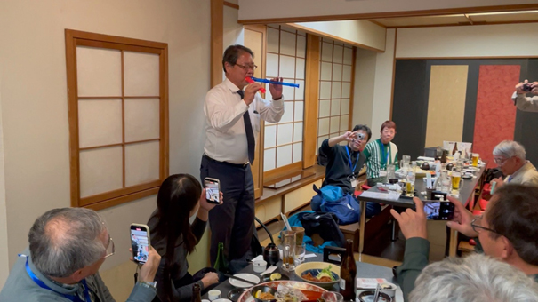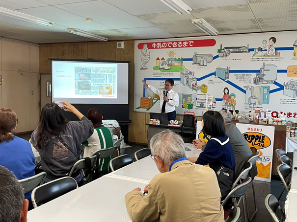 今回の視察を通して、高知の山地酪農やそれを支援するひまわり乳業について、次のような特徴がわかりました。 1.自然条件に合わせた多様な飼養体系:周年放牧、山地適応型放牧、短時間放牧+フリーバーンなど、牧場ごとに明確な個性と戦略がある。 2.循環資源・副産物活用による低投入型構造:特に斎藤牧場のモデルは全国的にも示唆が大きい。 3.加工・体験・観光を含む多角化:ディアランドの店舗・教育ファーム、雪ヶ峰の加工用途強化など、複線化が経営安定に寄与。 4.乳業との密接な連携と物語の共有:ひまわり乳業が地域の一次産業と深く結びつき、酪農家の価値や山地酪農の物語を商品として消費者に届けている。 これらの構造が補完しあい、「自然・循環・地域連携」を核とした独自の酪農エコシステムを形成しています。 今後は、季節変動、人手不足、草地管理、WCS確保などの課題を共有しつつ、牧場と乳業、行政、消費者が一体となった価値共創がさらに期待されます。 ![]() ![]() (吉澤社長が「アンパンマンのテーマ」を演奏し歓迎) |